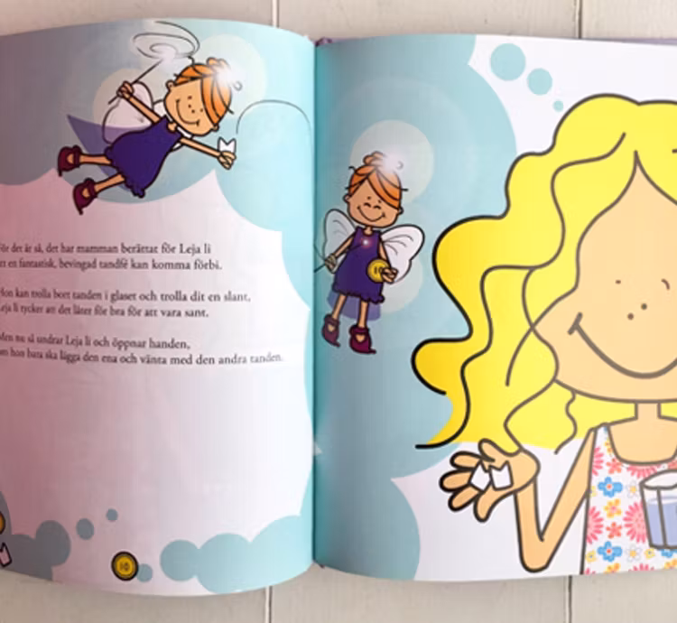 I Leja li och tandfén tappar Leja li tänder. Inte bara en utan två! Nu vill hon träffa tandfén men hur göra man då?