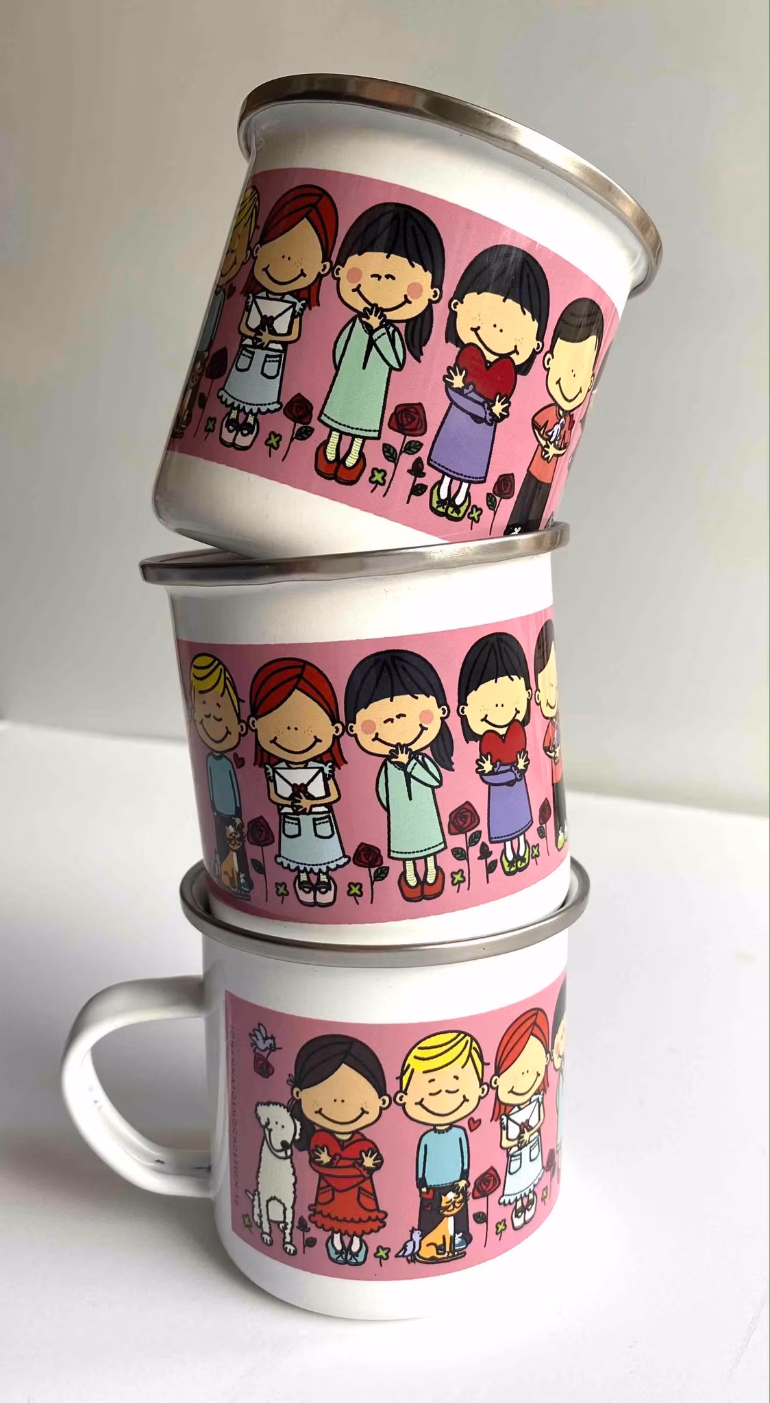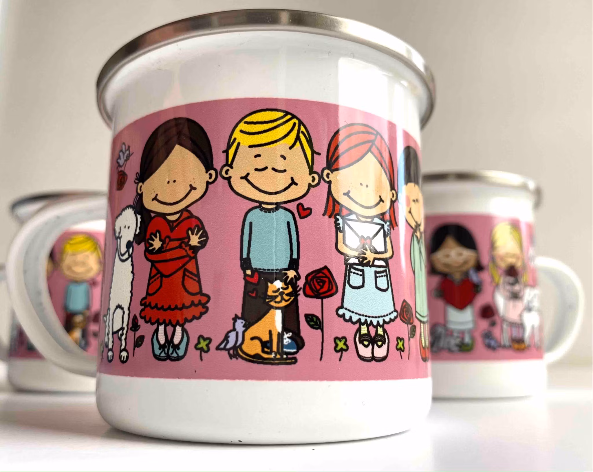 Emaljmugg med motiv Kärlek - motivet följer runt muggen