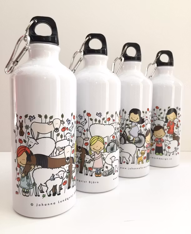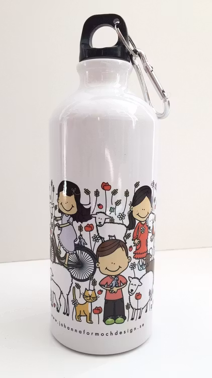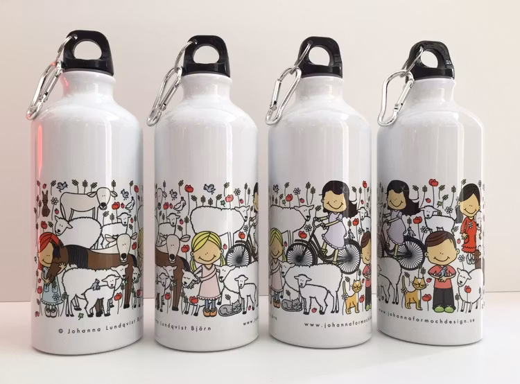 Motiv "Sommar" av Johanna Lundqvist Björn. Motivet följer runt flaskan.